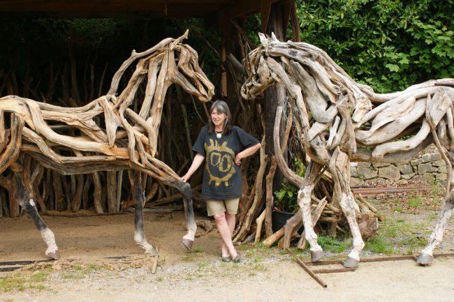 Heather Jansch pioneered the use of driftwood as a medium and although frequently copied, was but rarely rivalled. Because her work has the capacity to capture the vitality of the horse in a manner the evokes the same emotions as the animal itself, there is a spirit and life to the sculptures that defies belief.